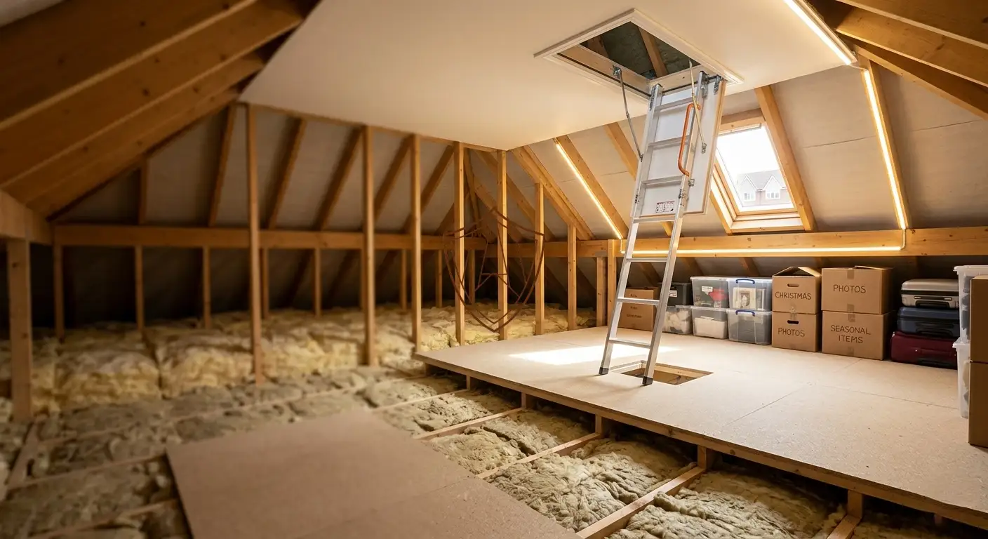 Upgrade loft insulation to support better energy performance while keeping the space practical for storage.